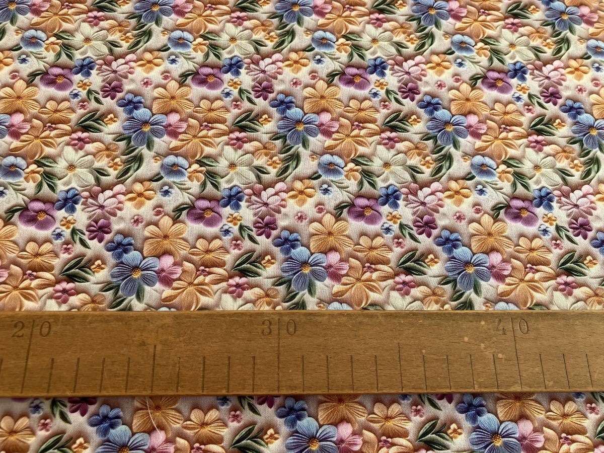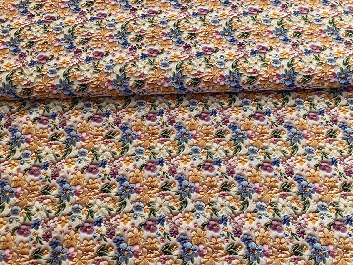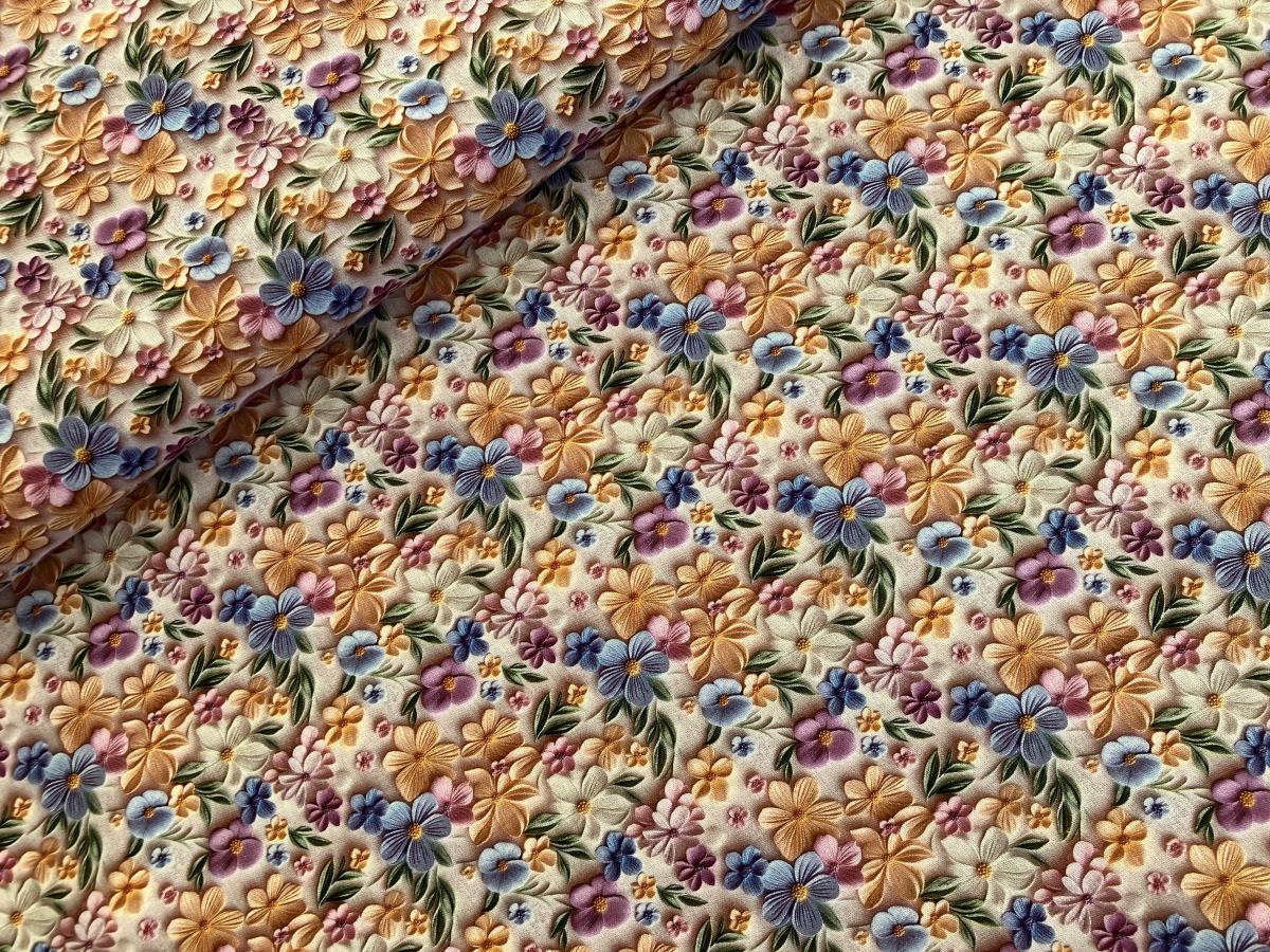 Popis produktu: Bavlněná dekorační látka 3D tisk Kytičky